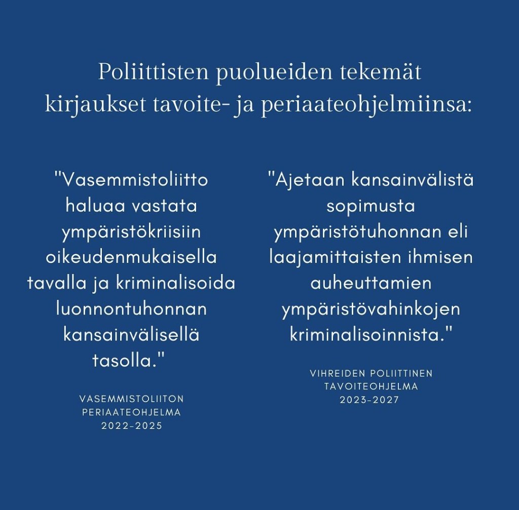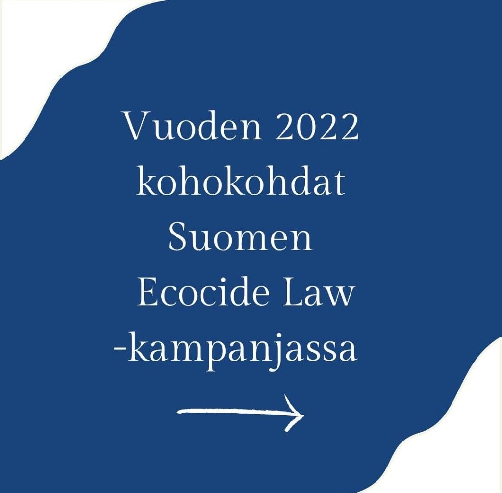 Kategoriat Yleinen Kohokohtia vuodelta 2022! Kiitokset kaikille kampanjaa tukeneille!! Post author Tekijä Raila Knuuttila Post date 3.1.2023 Ei kommentteja artikkeliin Kohokohtia vuodelta 2022! Kiitokset kaikille kampanjaa tukeneille!! Jaa: Jaa X:ssä(Avautuu uudessa ikkunassa) X Jaa Facebookissa(Avautuu uudessa ikkunassa) Facebook Tykkää Lataa... Aiheeseen liittyy ← Uutisia Belgiasta ja luonnontuhontarikoksen lisäämisestä rikoslain uudistukseen → Euroopan neuvoston yleiskokous äänesti Luonnontuhonnan tunnustamista vaativasta päätöslauselmasta Jätä kommentti Peruuta vastaus Δ