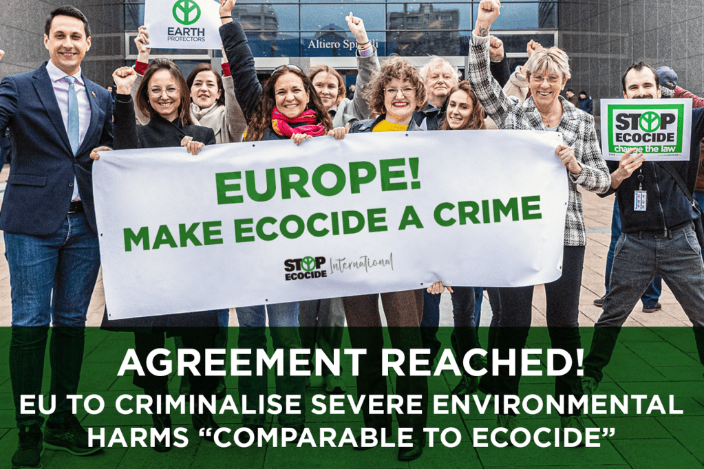 Euroopan unioni äänesti torstai-iltapäivänä Brysselissä ”ympäristönsuojelua rikosoikeudellisin keinoin koskevan direktiivin” vahvistamisesta. Direktiivi sisältää nyt säännöksen, joka koskee suoraan erityisiä vakavia ekosysteemien tuhoamistapauksia, mukaan lukien elinympäristöjen tuhoutuminen ja laiton hakkuu. Vaikka EU vältti käyttämästä varsinaista sanaa ”luonnontuhonta” toiminnallisessa tekstissä, siinä on selvästi huomioitu Euroopan parlamentin aiemmin tänä vuonna ehdottama teksti luonnontuhontatasoisten rikosten torjumiseksi sekä kasvava määrä jo ehdotettuja ja eteneviä luonnontuhontalakeja sekä Euroopassa että maailmanlaajuisesti.