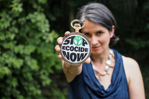 Tällä hetkellä Suomen Luonnontuhonta -lakialoiteryhmä toimii itsenäisenä osana kansainvälistä Stop Ecocide International -aloitetta ja järjestöä. Suomen työryhmän vetovastuussa ovat arktisen tutkimuksen väitöskirjatutkija Raila Knuuttila, juristi Ella Jokinen ja HTM Veronica Tiikkala . Toimimme yhteistyössä Ruotsin End Ecocide Sweden -ryhmän, Ekosäätiön sekä erityisesti suurlähettiläs emeritus Mikko Pyhälän (Stop Ecocide Internationalin neuvottelukunnan jäsen) kanssa. Vuonna 2024 teimme läheisesti yhteistyötä Choirs for Ecocide Law -ryhmän kanssa, jota johtavat Merzi Rajala ja Kirsi Kaunismäki-Suhonen. Suomessa vaikuttavat myös mm. kestävän tulevaisuuden asiantuntija Marko Ulvila ja FT Inkeri Aula. Toimintamme on tiivistä kansainvälisen Stop Ecocide International -järjestön muiden maatiimien (n. 50 ryhmää) kanssa. Stop Ecocide Foundation Hollannissa 2019 rekisteröity säätiö, joka tukee tämän puuttuvan lain täytäntöönpanoa. Kuvassa kansainvälisen kampanjan toiminnanjohtaja Jojo Mehta.